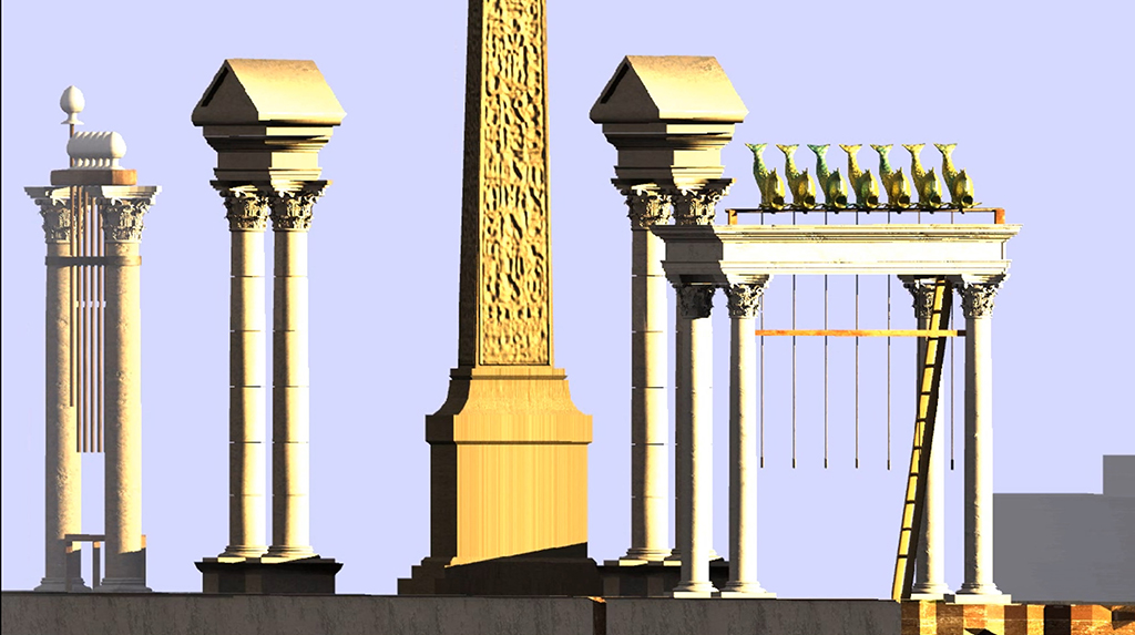 Sono due meccanismi o contagiri presenti nei circhi antichi. Il primo meccanismo era composto da 7 uova che si sollevavano singolarmente per segnalare ogni inizio giro: il secondo, da 7 delfini che versavano acqua indicando il completamento del giro.